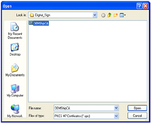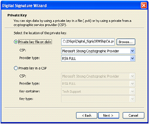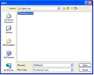8. private key file on disk 를 선택하고 OEMShipCA.pvk 파일을 선택합니다.