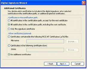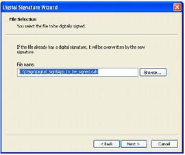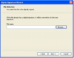 5. Browse 클릭하고 추가하고자 하는 디지털 서명 파일을 선택한 후 Next를 클릭합니다.