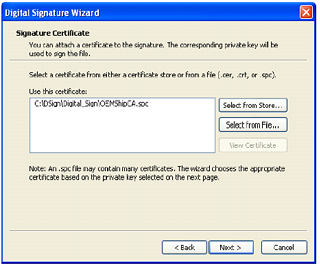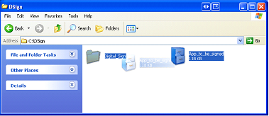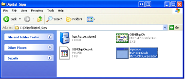 1. 디지털 서명 프로그램을 (DigiSign.zip) 다운로드 합니다. 압축된 파일이며 다음의 “signcode.exe, OEMShipCA.spc and OEMShipCA.pvk” 파일들을 포함하고 있습니다. 압축을 풀고 파일들의 구성을 확인합니다.
