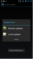 2. OS 업데이트: 설정 -> 휴대전화 정보 -> System update – Local updates – File Explorer - Folder 탭 지정 – OTA OS 패키지 파일 선택 – Reboot ‘OK’.