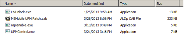 i. UPM_Patch_MM3.zip 파일은LtkUnlock.exe, rapienable.exe, M3Mobile UPM Patch.exe 그리고 UPMControl.exe 파일들을 아래그림과 같이 포함하고 있습니다.