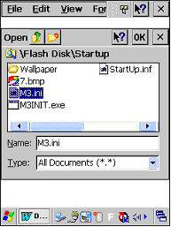 Launch WordPad [Open] select M3.ini in \Flash Disk\StartUp