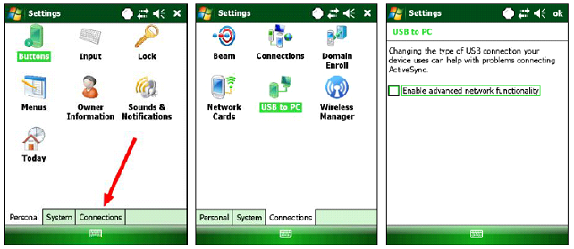 ‘connections - USB-PC’ 에서 ‘Enable advanced network functionality`의 체크를 해지합니다.