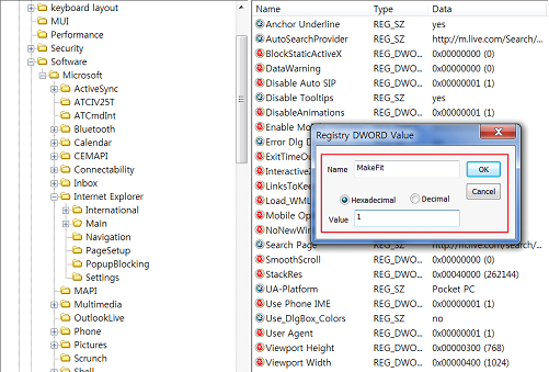 Please copy registry value as below, and reset device to save setting, if so you will be able to use Internet Explorer of WM6.5 in WM5.0’s format