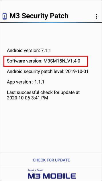 2. Check the current version (V1.4.0) and select the Server and click the 'CHECK FOR UPDATE'.