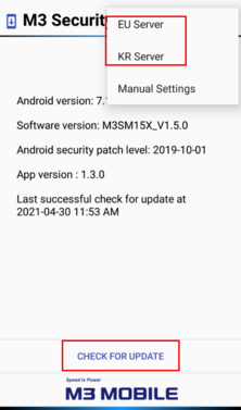 2. Check the current version and select the Server and click the 'CHECK FOR UPDATE'.