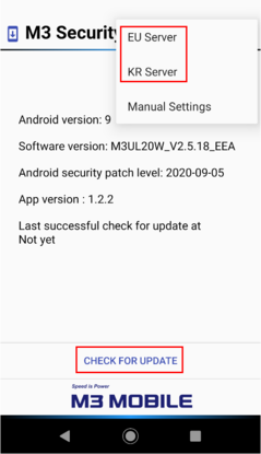 2. Check the current version (V2.5.18_EEA) and select the Server and click the 'CHECK FOR UPDATE'.