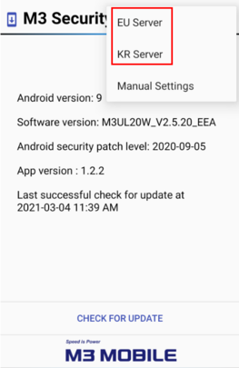 2. Check the current version (V2.5.20_EEA) and select the Server and click the 'CHECK FOR UPDATE'.