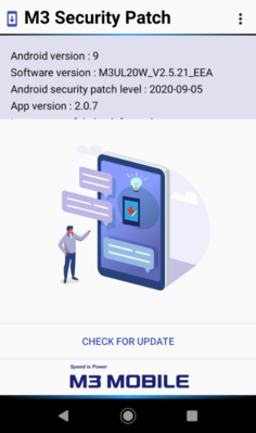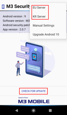 2. Check the current version (V2.5.20_EEA) and select the Server and click the 'CHECK FOR UPDATE'.