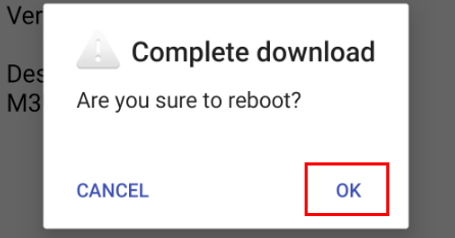 4. 파일 다운로드가 완료되면 재부팅 위한 OK 버튼 클릭
