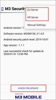 . 현재 버전 확인 (V1.4.0) , 서버 선택한 후 'CHECK FOR UPDATE' 클릭.