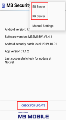 2. 현재 버전 확인 , 서버 선택한 후 'CHECK FOR UPDATE' 클릭.